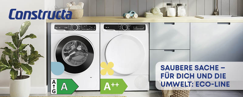 Die Eco-Line Waschmaschinen waschen in der sparsamsten Energie-Effizienzklasse A mit einer Beladungsmenge von 7, 8, 9 oder 10 kg mit Aqua Stop: lebenslanger Garantie gegen Wasserschäden. Die Eco-Line Waschmaschinen schonen die Umwelt und das Haushaltsbudget dank niedrigem Stromverbrauch. Sie ßberzeugen mit sauberer Wäsche - ob Handtuch, Seidenbluse, Unterwäsche, Babykleidung oder Wollpulli. >> zu den Constructa Eco-Line Waschmaschinen
